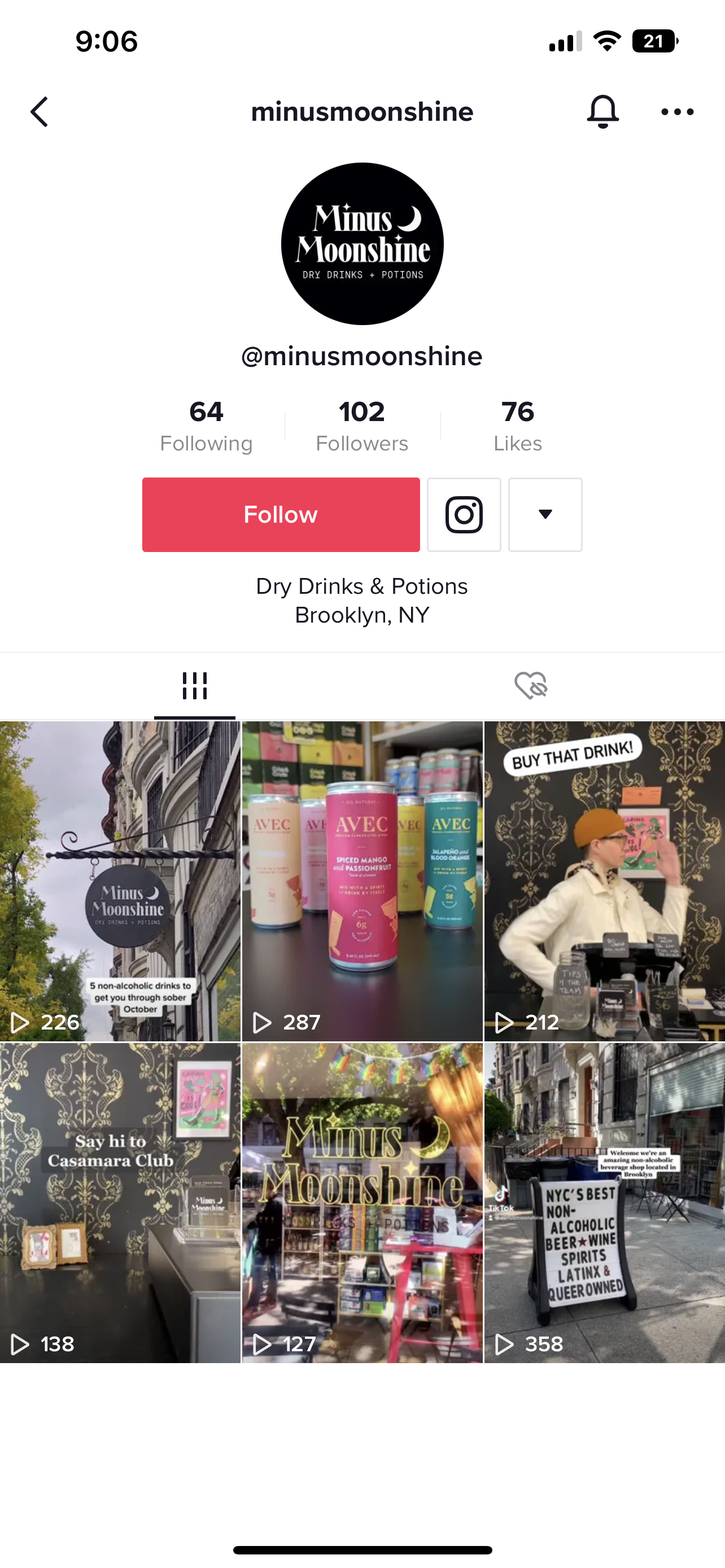 For Minus Moonshine's TikTok, I set up and managed their account from scratch. Initially, I focused on building engaging content that highlighted their unique range of non-alcoholic beverages, introducing followers to mindful drinking and lifestyle options. Through consistent and creative content, I helped increase brand awareness and attract a community interested in alcohol-free alternatives.